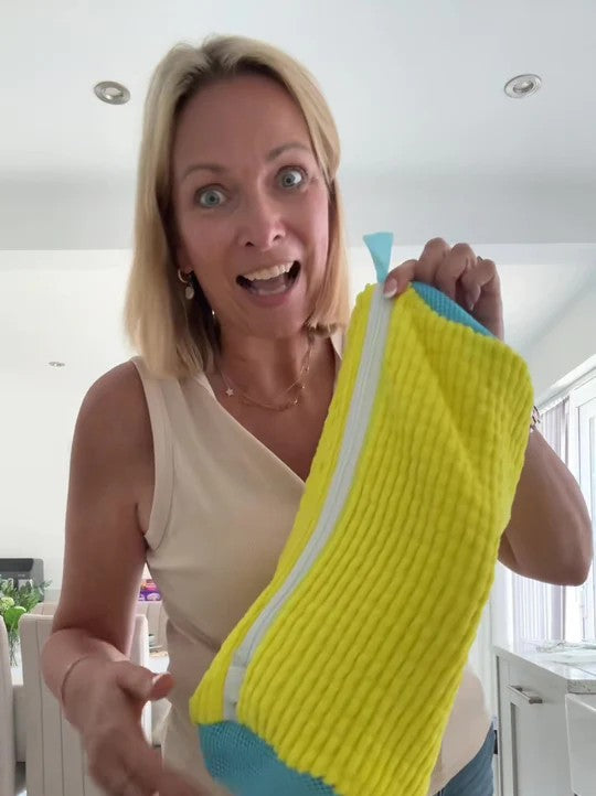 Notre sac à linge Pompotte est la solution idéale pour nettoyer vos chaussures en toute sécurité. Ses milliers de fibres douces éliminent la saleté tout en protégeant vos chaussures et votre machine à laver.